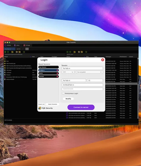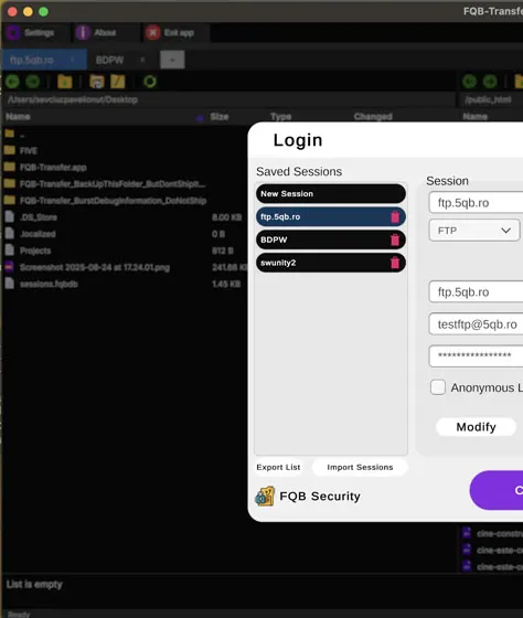 FQB-Transfer is a modern FTP & SFTP client built for professionals who move files every day. Connect to servers, transfer data, and edit files live — without clutter or friction.