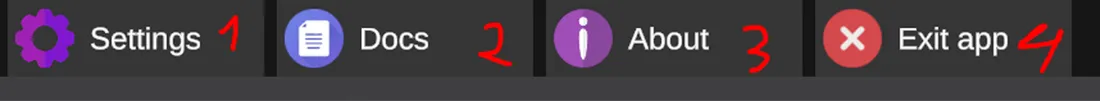 - 1) Settings – Opens application preferences such as UI behavior and defaults.