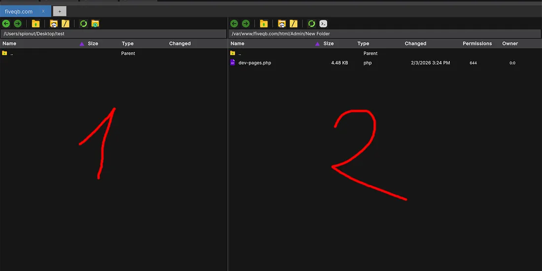 - FQB Transfer uses a clear dual-panel layout: local on the left, remote on the right.
